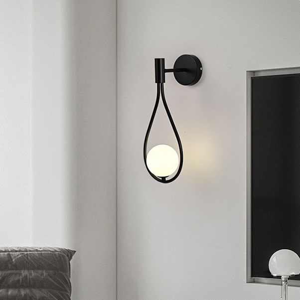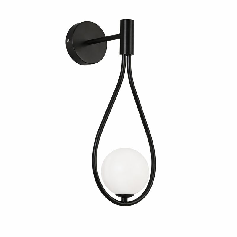 Aplica de perete modernă, cu design minimalist și elegant, ideală pentru interioare contemporane. Structura metalică de culoare neagră susține un glob luminos cu finisaj mat, oferind o lumină difuză, plăcută și relaxantă. Forma sa fluidă adaugă un accent decorativ subtil, transformând peretele într-un element de design.