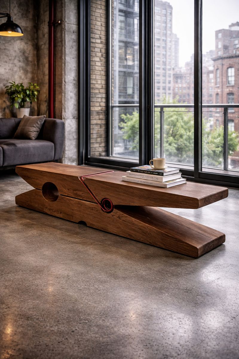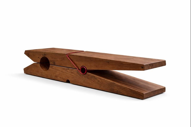 Banchetă realizată din lemn masiv natural, cu un design sculptural și expresiv.