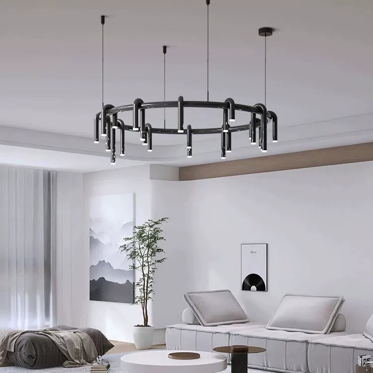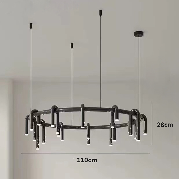 Această lustră cu design contemporan impresionează prin forma sa circulară și liniile fluide, devenind punctul de atracție al oricărui interior modern. Construită din fier durabil și elemente din PMMA de înaltă calitate, oferă un echilibru perfect între estetică și funcționalitate.