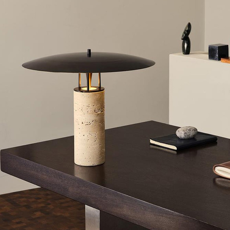 Prima pagină Iluminat Veioza Lampă de masă modernă din travertin cu abajur metalic 42 x 33 cm