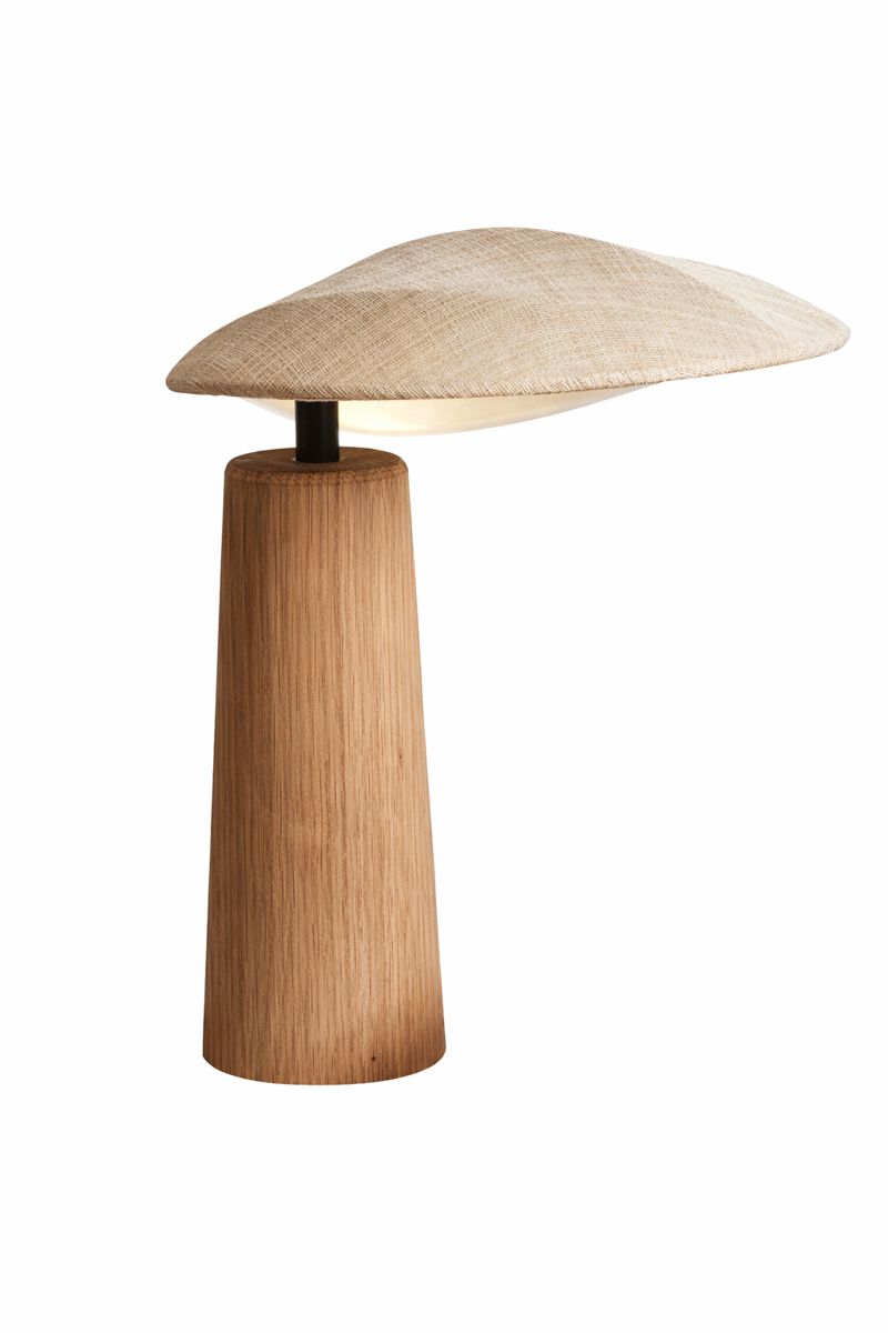 Lampă de masă cu un design calm și organic, inspirat din filosofia wabi-sabi, care celebrează naturalețea, imperfecțiunea și simplitatea materialelor autentice. Baza din bambus masiv, cu textură vizibilă și finisaj natural, oferă stabilitate și o prezență caldă, sculpturală.