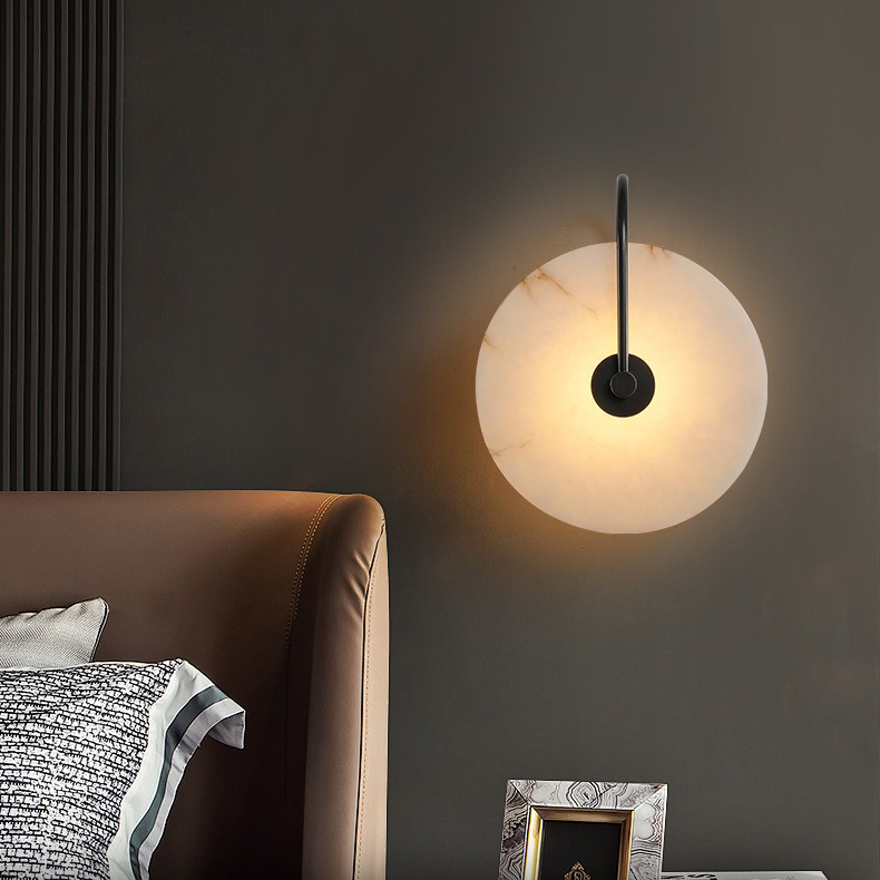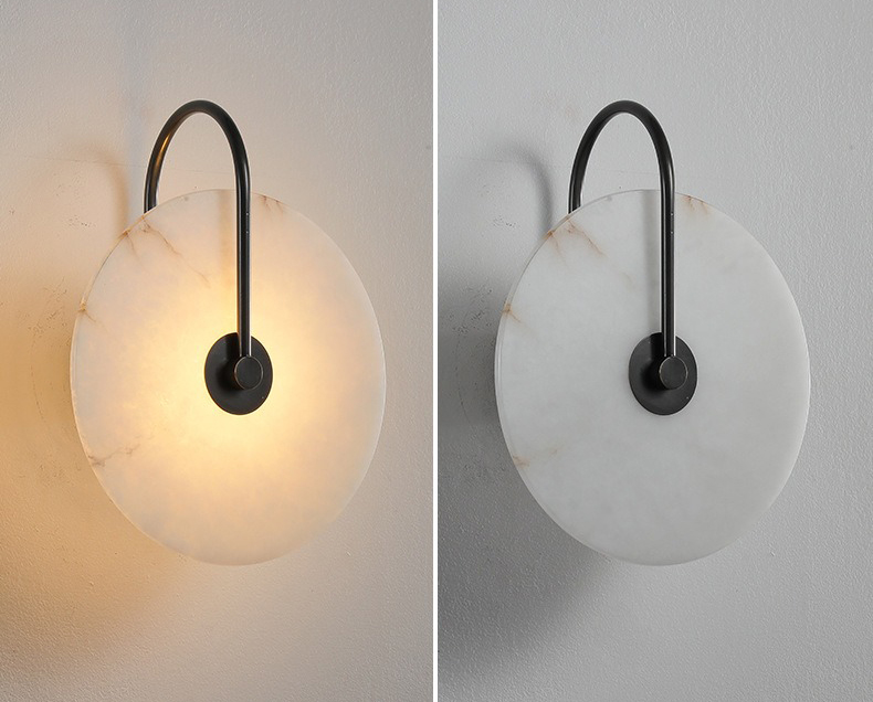 Aplica de perete decorativă – disc din alabastru si finisaj negru