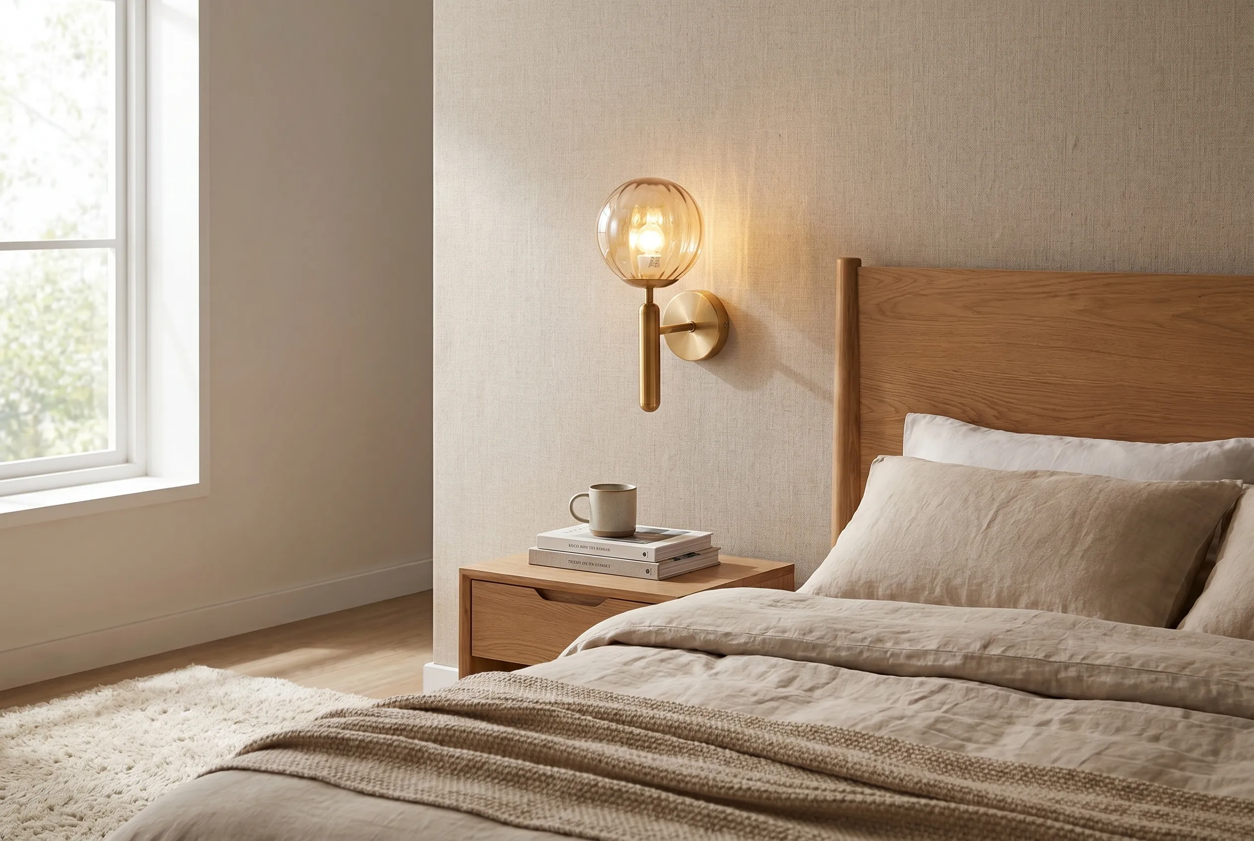 Dacă ești în proces de a redefini dormitorul, acordă atenție modului în care lumina și finisajele lucrează împreună. O aplică bine aleasă poate deveni ancora vizuală a unui perete, mai ales dacă restul spațiului e minimalist. Nu e nevoie de gesturi mari — uneori, un singur element bine poziționat schimbă percepția întregii camere.