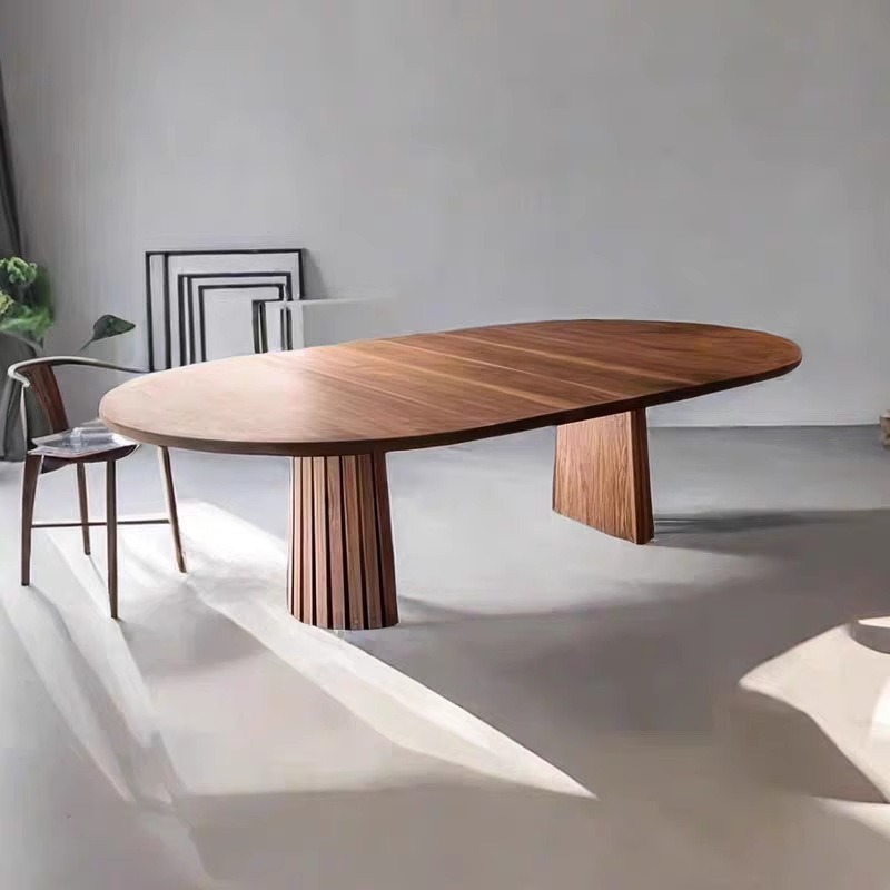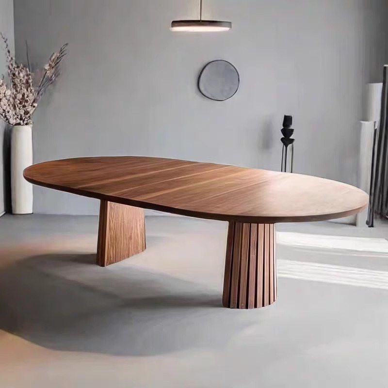 Masă elegantă cu design modern, realizată din lemn de pin de înaltă calitate. Blatul cu formă organică, finisat fin, evidențiază textura naturală a lemnului și oferă un aspect cald și rafinat. Baza sculpturală, cu două picioare distincte, asigură stabilitate și personalitate, transformând masa într-un element central ideal pentru interioare contemporane sau minimaliste.