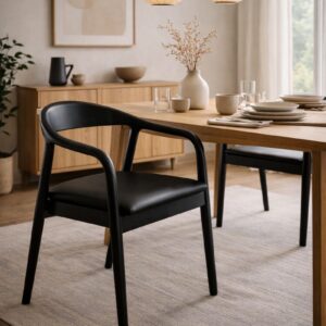 Scaun dining din lemn cu șezut tapițat Zen Black
