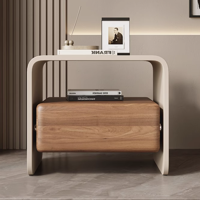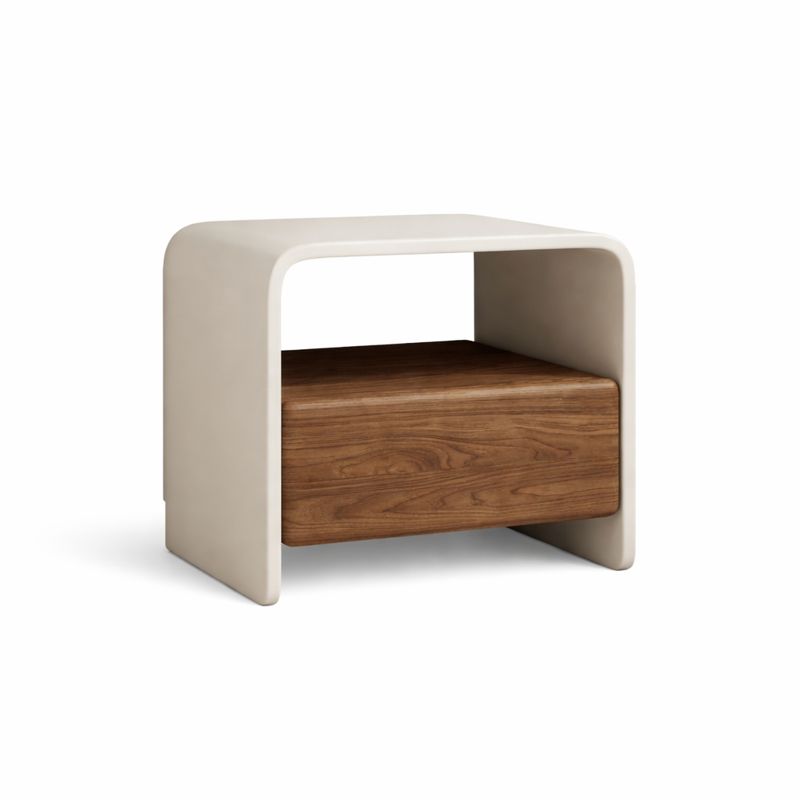 Creată pentru interioare moderne și aerisite, această noptieră se evidențiază printr-un design sculptural și proporții echilibrate. Structura din MDF este finisată într-o nuanță caldă walnut, care aduce un accent natural și elegant în dormitor.