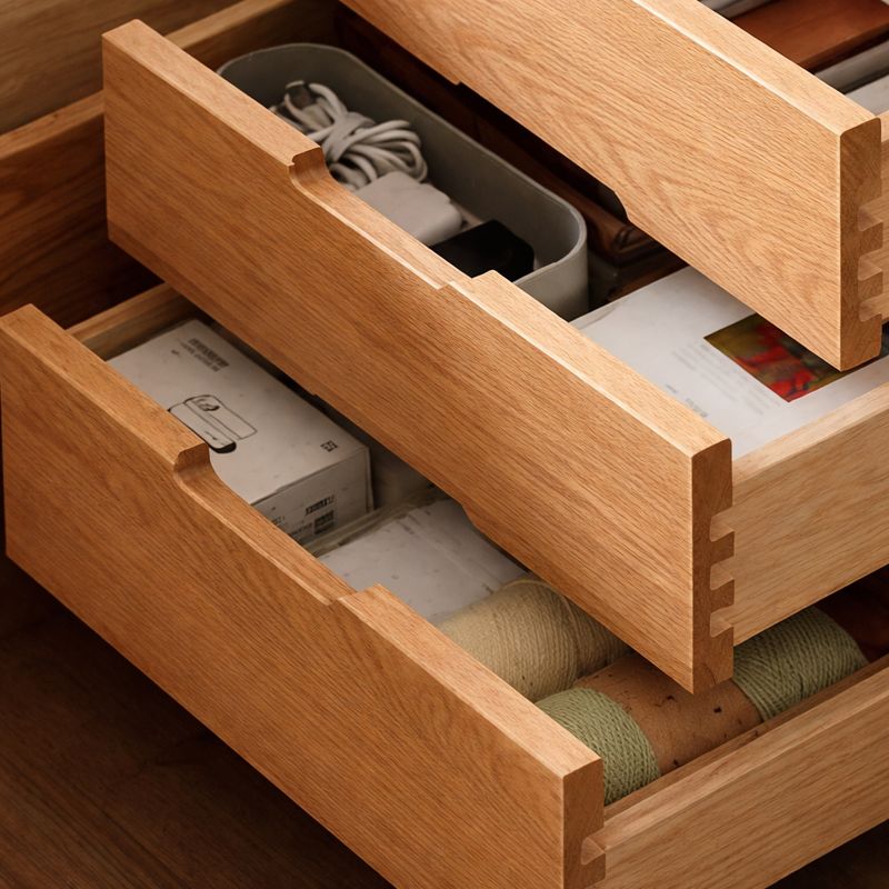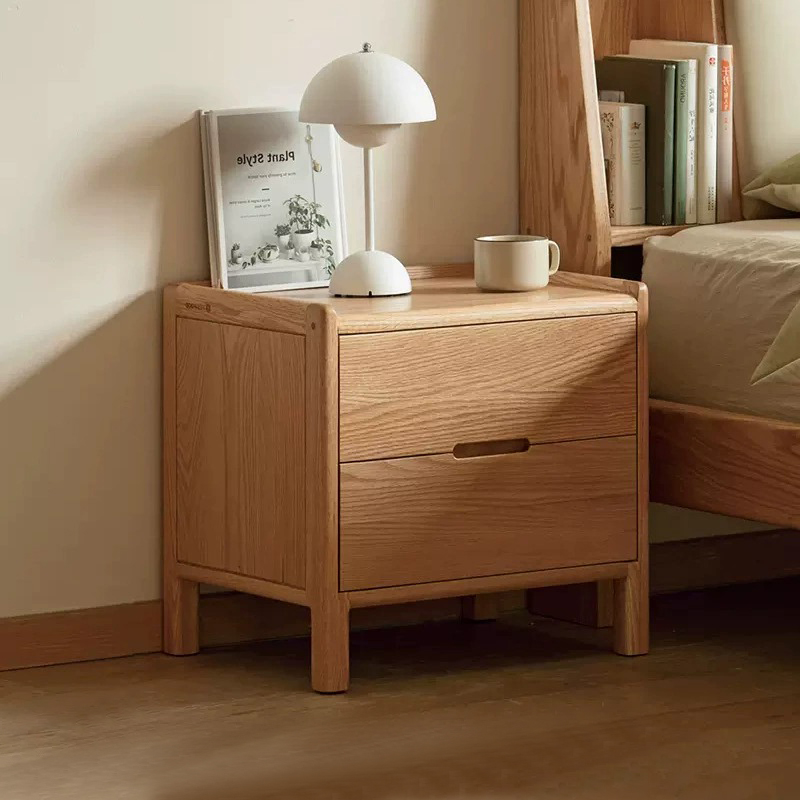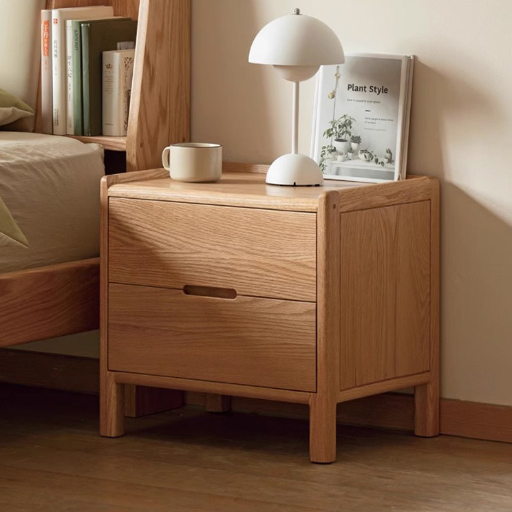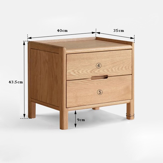 Noptiera este realizată din lemn masiv de stejar, evidențiind textura naturală și finisajul cald al materialului. Designul minimalist, cu linii curate și colțuri rotunjite, o face ușor de integrat în dormitoare moderne sau clasice. Sertarele sunt prevăzute cu îmbinări tip coadă de rândunică, oferind rezistență și durabilitate în timp, precum și spațiu generos pentru depozitarea obiectelor personale. Finisajul atent lucrat pune în valoare calitatea lemnului și detaliile artizanale, transformând această noptieră într-o piesă practică și elegantă de mobilier