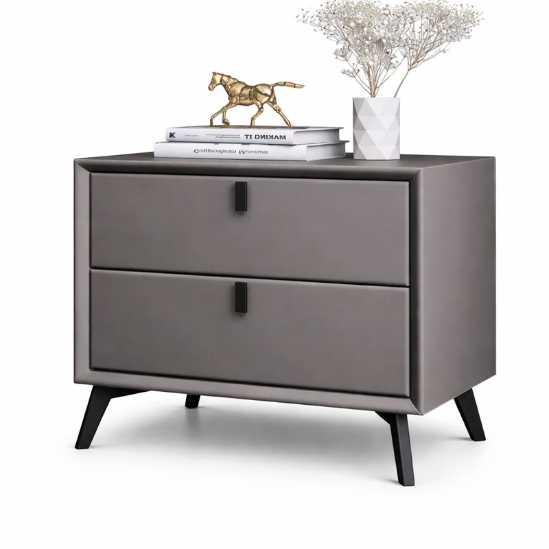 Designul este pus în valoare de cele două sertare generoase, prevăzute cu mânere discrete în contrast, care asigură acces facil și o organizare eficientă a obiectelor personale. Structura solidă este completată de picioarele ușor înclinate, ce oferă stabilitate și un aer contemporan. Ușor de întreținut și plăcută la atingere, pielea ecologică face din această noptieră o alegere ideală pentru interioare moderne, minimaliste sau luxoase, unde funcționalitatea se îmbină armonios cu estetica.