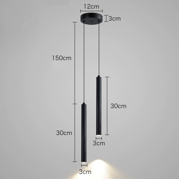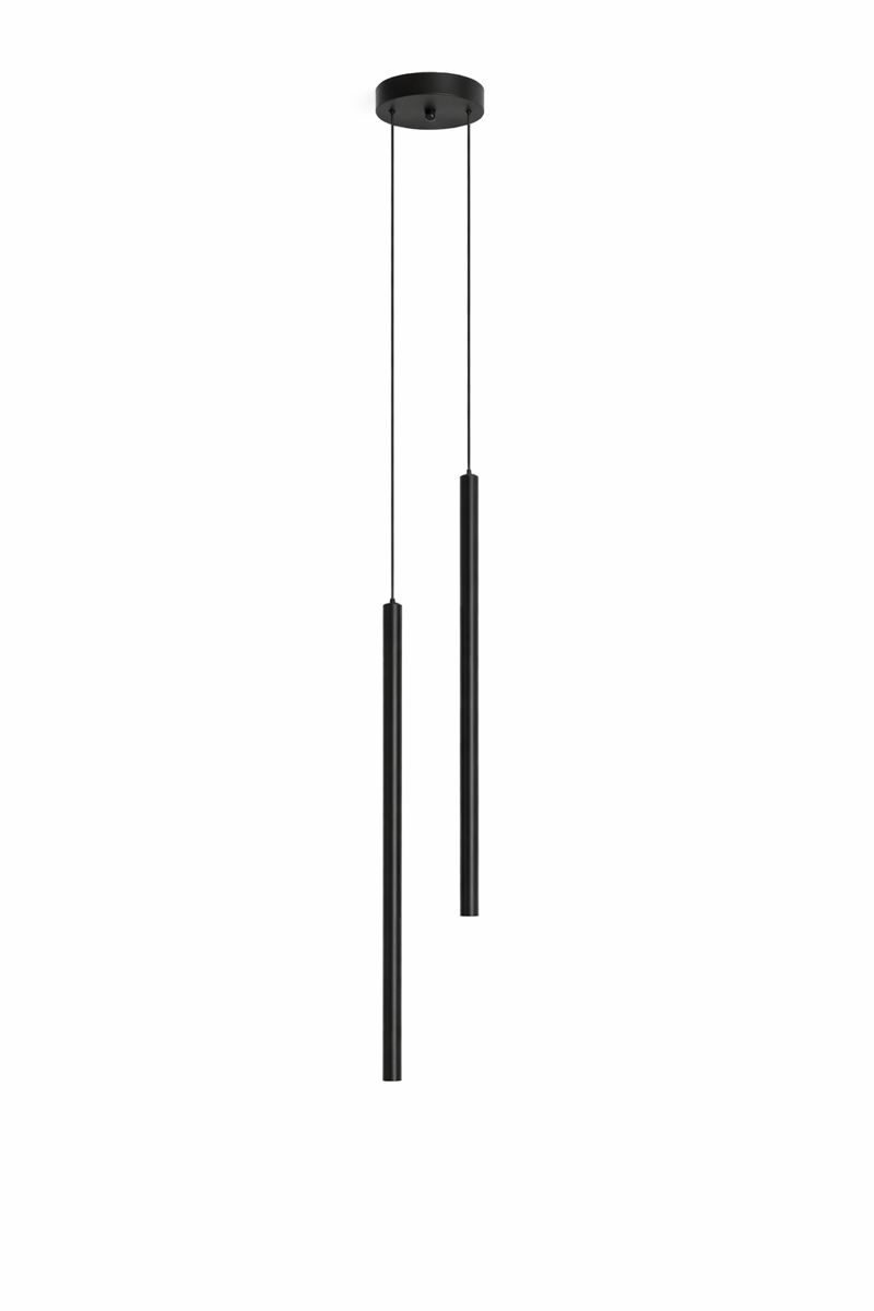 Pendul dublu cu design minimalist și proporții elegante, creat pentru interioare contemporane și rafinate. Cele două corpuri cilindrice suspendate, finisate în negru mat, oferă un efect vizual echilibrat și modern, ideal pentru iluminat de accent sau zonal.