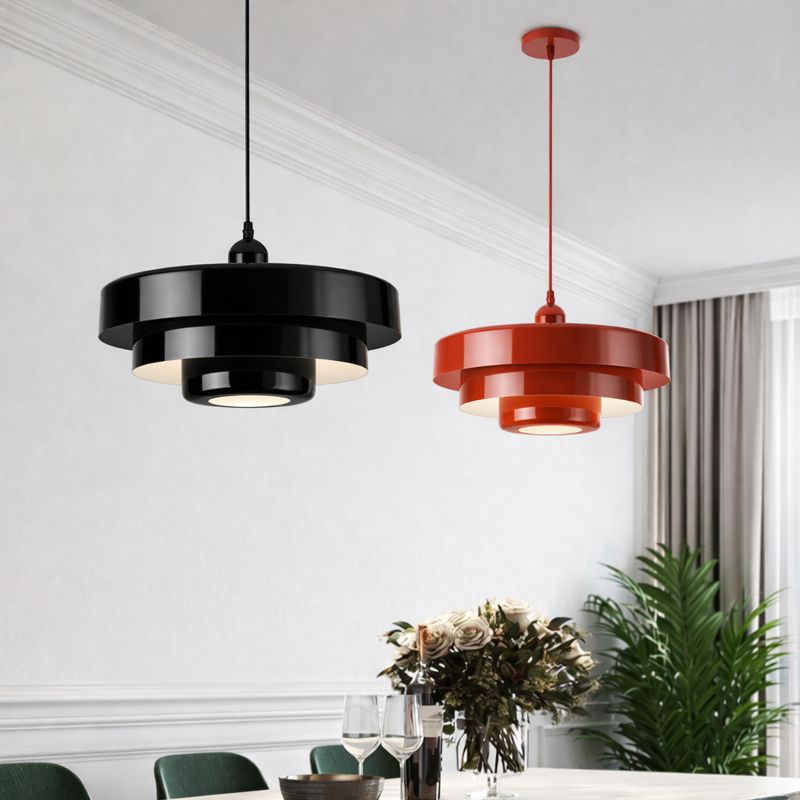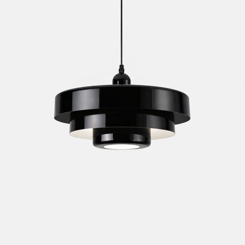 Pendul decorativ cu design geometric, unde forma și funcția se îmbină armonios. Volumetria stratificată și liniile curate creează un obiect de iluminat cu personalitate, ideal pentru interioare contemporane.