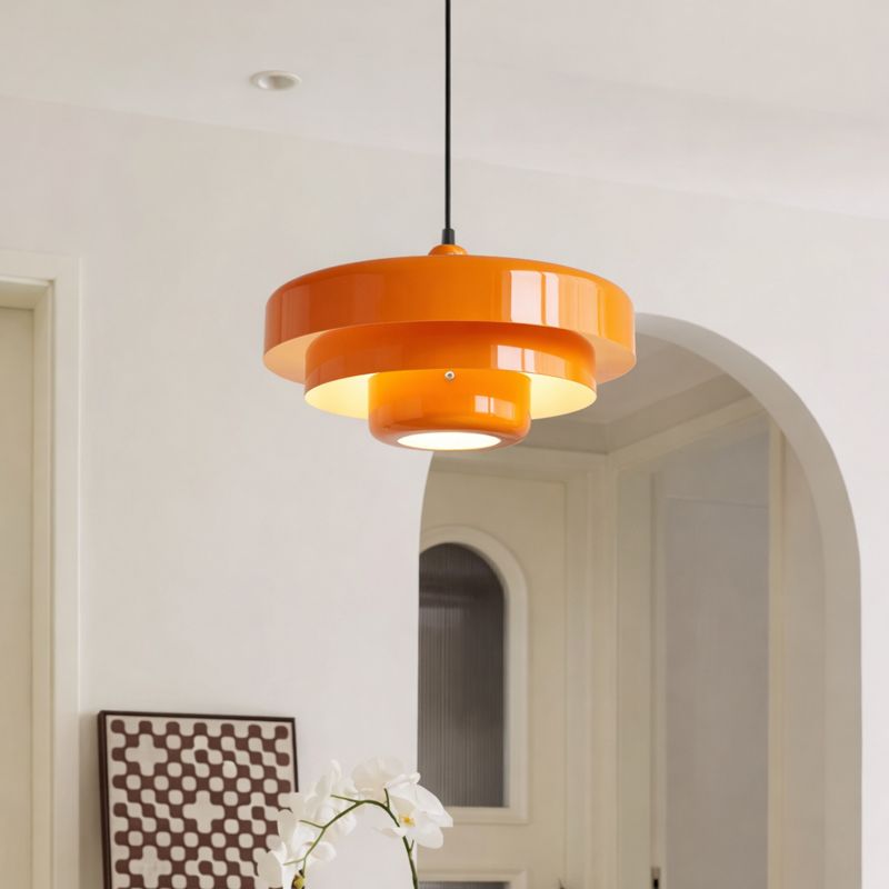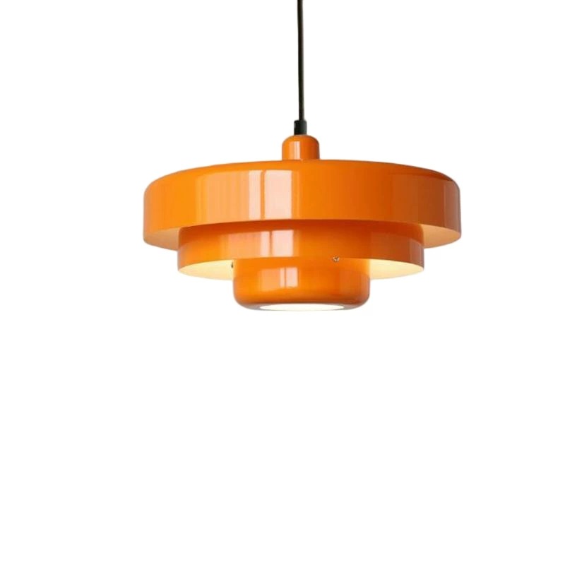 Pendul decorativ cu design geometric, unde forma și funcția se îmbină armonios. Volumetria stratificată și liniile curate creează un obiect de iluminat cu personalitate, ideal pentru interioare contemporane.