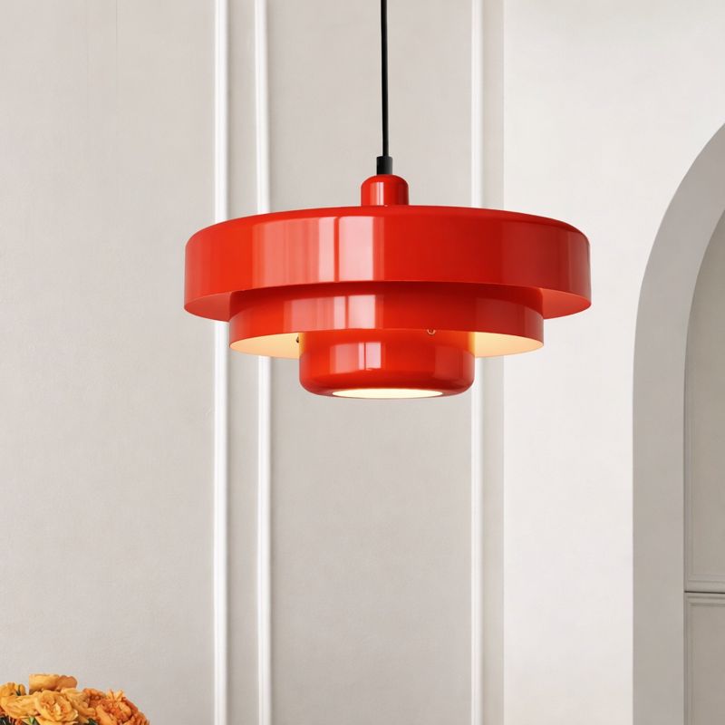 Pendul decorativ cu design geometric, unde forma și funcția se îmbină armonios. Volumetria stratificată și liniile curate creează un obiect de iluminat cu personalitate, ideal pentru interioare contemporane.