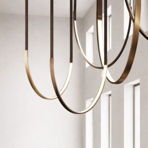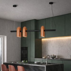 Lampă suspendată liniară cu trei surse – design contemporan, negru si teracotă 120cm