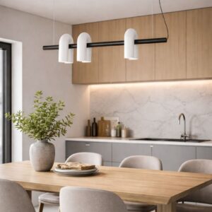 Lampă suspendată liniară cu trei surse – design contemporan negru 120cm