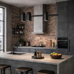 Lampă suspendată liniară cu trei surse – design contemporan, negru si gri 120cm