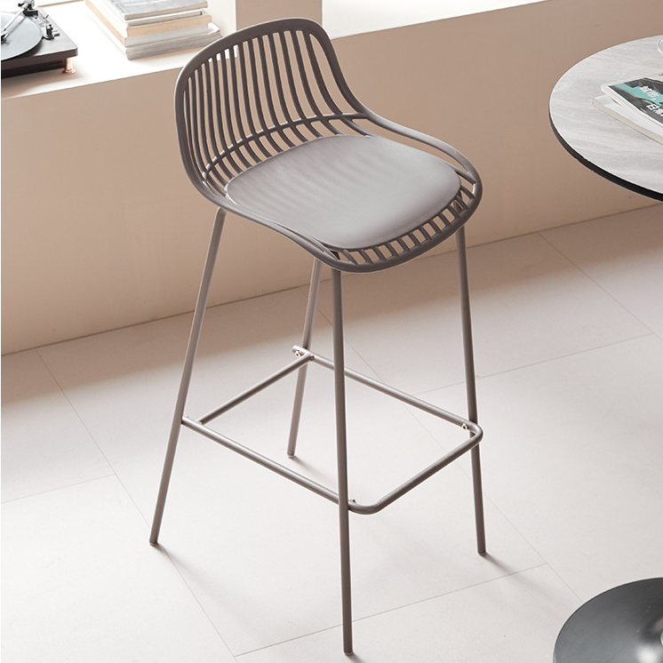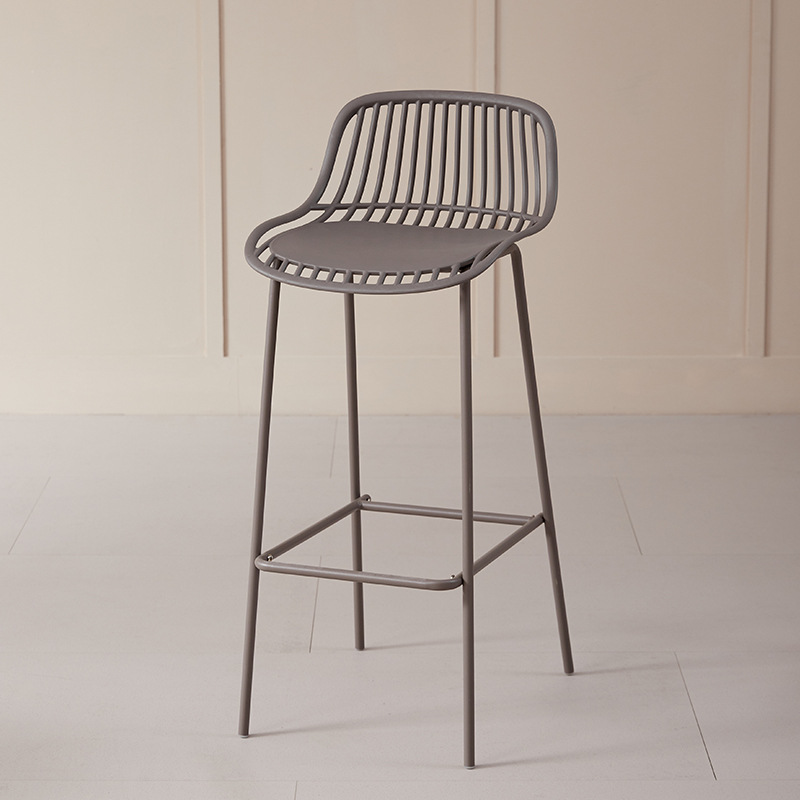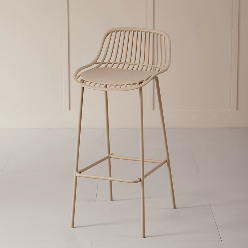 Scaun de bar cu design modern și aer minimalist, realizat din metal (fier) rezistent, ideal pentru bucătării, baruri sau spații contemporane. Șezutul și spătarul cu structură aerisită oferă confort și susținere, iar liniile fluide conferă un aspect elegant și ușor.