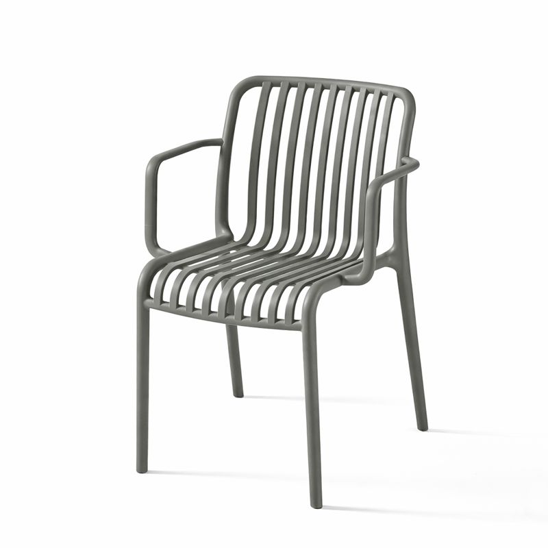 Datorită materialului din polipropilenă, scaunul este ușor de întreținut, rezistent la uzură și potrivit atât pentru interior, cât și pentru exterior. Designul minimalist, completat de cotiere integrate, îl face ușor de integrat în spații moderne, terase, bucătării, dininguri sau zone de relaxare