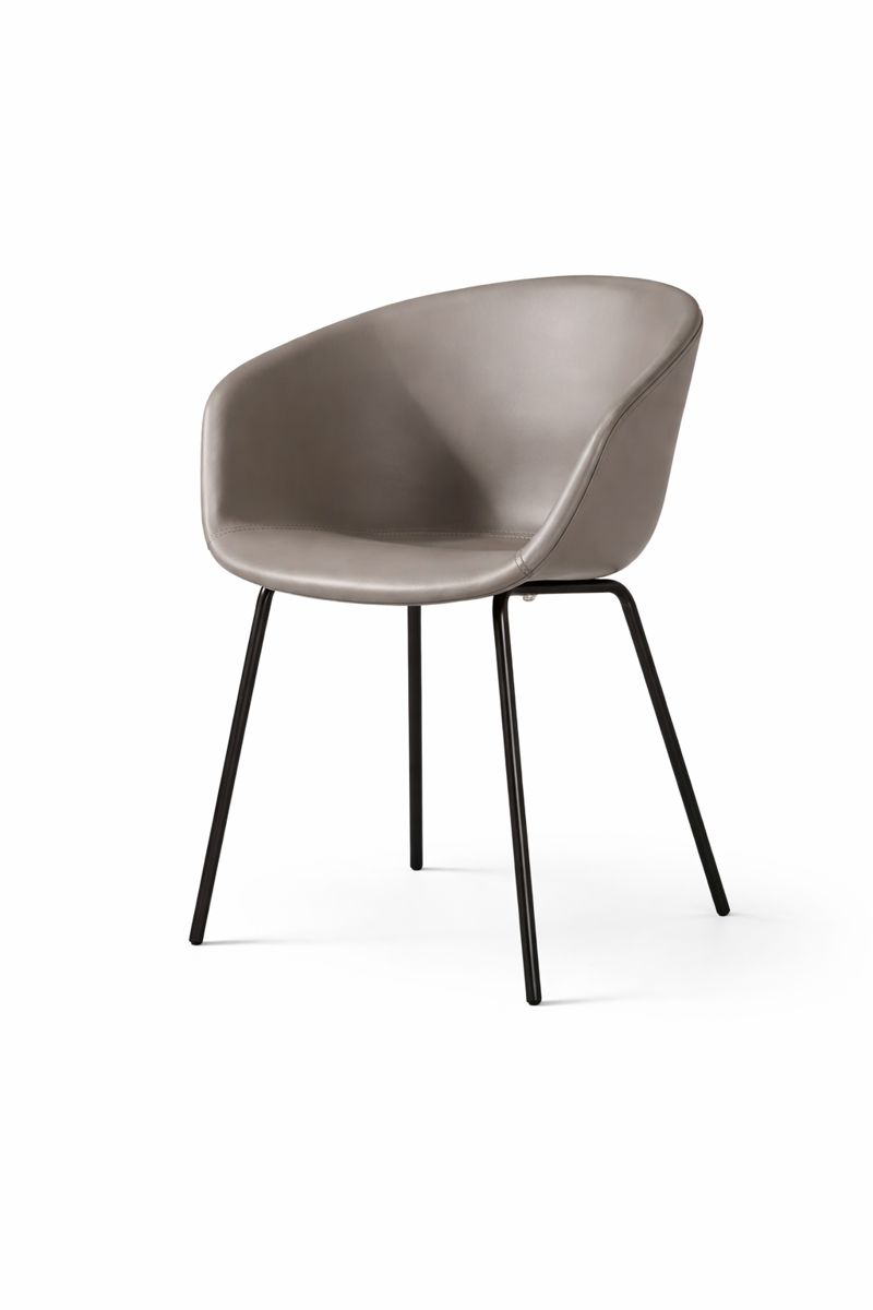 Tapițeria piele eco de calitate superioară este plăcută la atingere și ușor de întreținut, iar structura cu picioare metalice subțiri, finisate în negru, oferă stabilitate și rezistență în timp. Datorită designului său versatil, scaunul este potrivit atât pentru zona de dining, cât și pentru living, birou sau spații comerciale precum restaurante și cafenele.