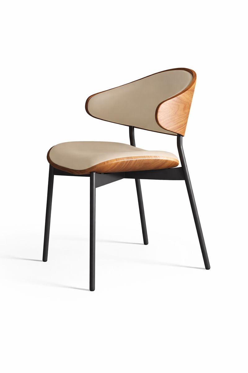 Scaunul Luna Wood Beige  îmbină eleganța modernă cu confortul funcțional, fiind ideal pentru spații de dining, bucătării moderne sau zone de tip horeca. Spătarul curbat din lemn cu finisaj natural evidențiază textura rafinată a fibrei, oferind un accent cald și sofisticat. Șezutul tapițat cu material negru de înaltă calitate asigură confort sporit, chiar și la utilizare îndelungată.